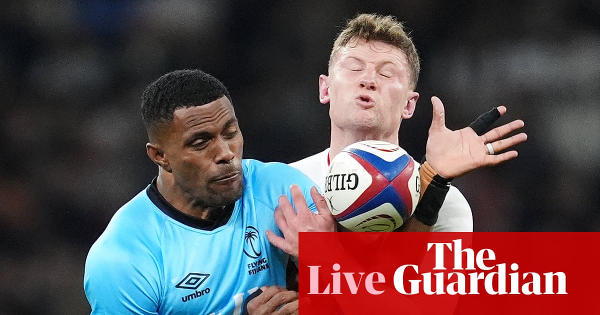 ","elementId":"e24d4484-9211-4fd2-849e-858880cca655"}],"attributes":{"pinned":false,"keyEvent":true,"summary":false},"blockCreatedOn":1762625128000,"blockCreatedOnDisplay":"18.05 GMT","blockLastUpdated":1762625319000,"blockLastUpdatedDisplay":"18.08 GMT","blockFirstPublished":1762625319000,"blockFirstPublishedDisplay":"18.08 GMT","blockFirstPublishedDisplayNoTimezone":"18.08","title":"TRY! England 7 – 10 Fiji (Caleb Muntz)","contributors":[],"primaryDateLine":"Sat 8 Nov 2025 18.08 GMT","secondaryDateLine":"First published on Sat 8 Nov 2025 16.34 GMT"},{"id":"690f833c8f082a732225990e","elements":[{"_type":"model.dotcomrendering.pageElements.TextBlockElement","html":"